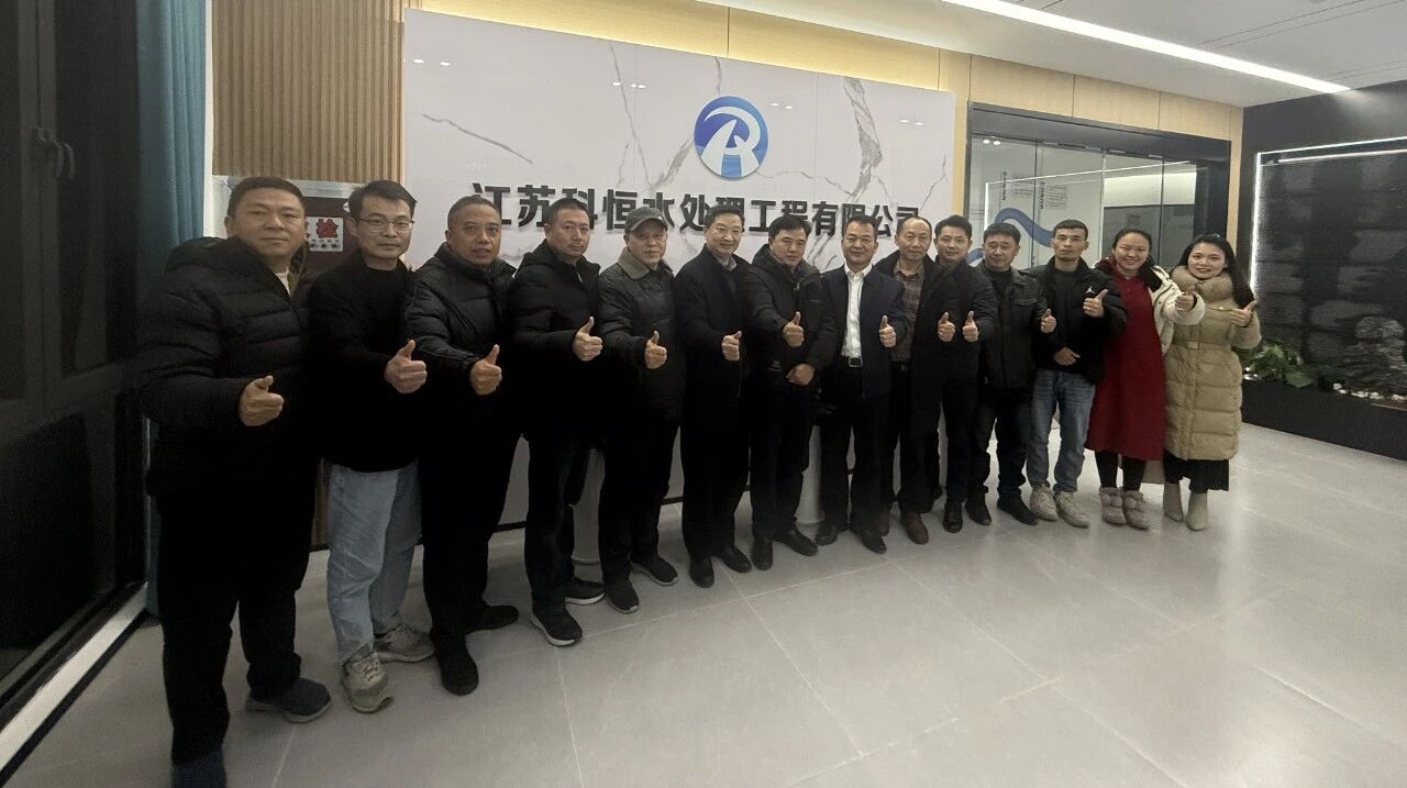 會(huì)議召開前夕,商會(huì)領(lǐng)導(dǎo)班子成員還走訪參觀了執(zhí)行會(huì)長單位——江蘇科恒水處理工程有限公司總部。作為一家專注于水處理領(lǐng)域的高新技術(shù)企業(yè),公司深耕工業(yè)廢水處理、市政水環(huán)境治理、凈水設(shè)備研發(fā)等核心業(yè)務(wù),憑借先進(jìn)的技術(shù)工藝、完善的服務(wù)體系和創(chuàng)新的發(fā)展理念,在行業(yè)內(nèi)樹立了良好口碑。公司總經(jīng)理王世海詳細(xì)介紹了企業(yè)從初創(chuàng)到壯大的發(fā)展歷程、當(dāng)前主營業(yè)務(wù)布局及未來綠色低碳發(fā)展路徑,與會(huì)人員對(duì)科恒水處理的專業(yè)實(shí)力和發(fā)展愿景表示高度認(rèn)可,為商會(huì)與會(huì)員企業(yè)間的資源共享、技術(shù)交流、協(xié)同發(fā)展搭建了堅(jiān)實(shí)橋梁。